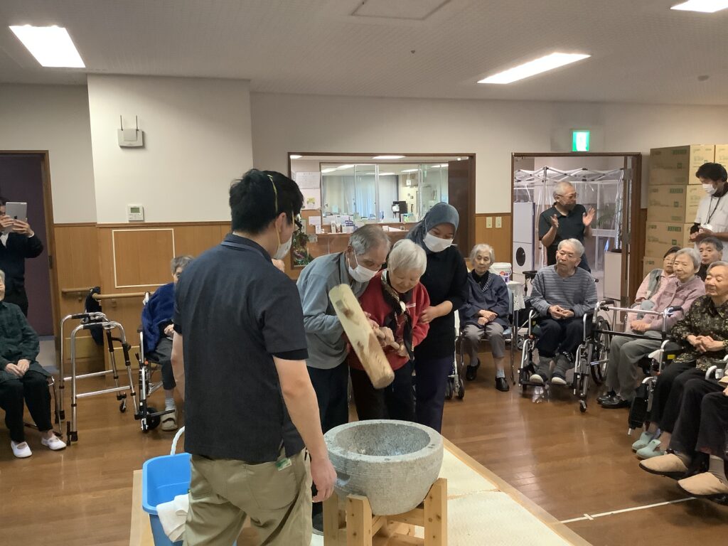 杵をついていただく予定でしたが、自然と返し役を担ってくださる方もおり、皆様が一体となってもちつきを行うことができました。