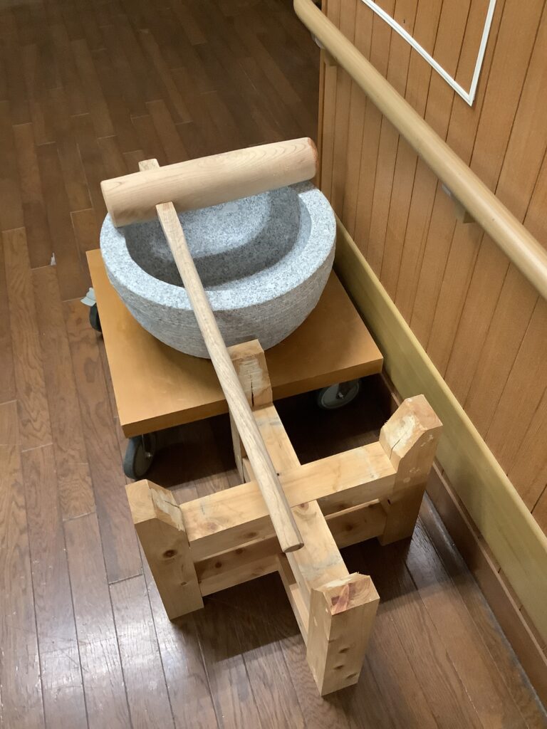 石の臼を用意し、ご利用者様にも実際に参加していただきました。