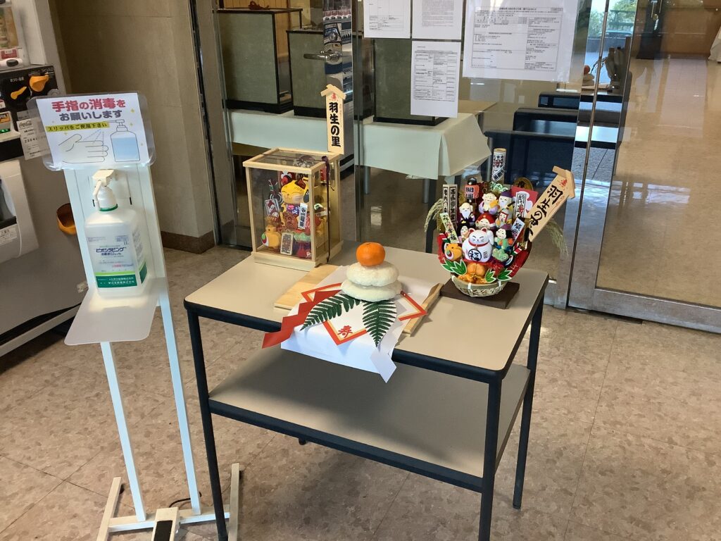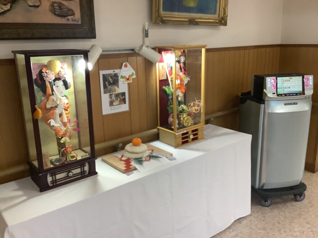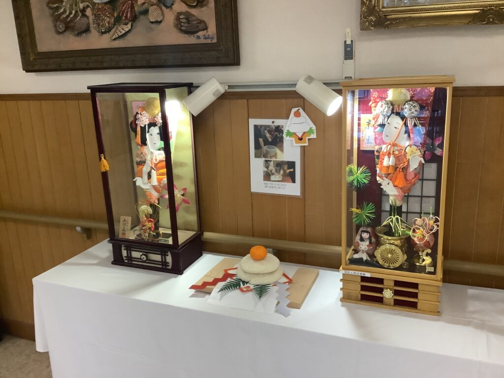 年末にご利用者様と職員で一緒に作った飾り餅を、1階の正面玄関・エントランスホール・来所受付の3か所に設置いたしました。