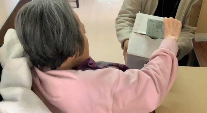 2月4日、羽生の里では衆議院議員選挙の期日前投票を行いました。53名のご利用者様が投票を希望され、住民票のある8区市町に投票用紙を申請しましたが、当日は体調等の理由により14名が棄権され、39名のご利用者様がそれぞれの思いを持って一票を投じられました。事前に候補者や政党の資料をお渡しし、ご自身で投票先を選んでいただいていたため、当日は比較的スムーズに投票を行うことができました。