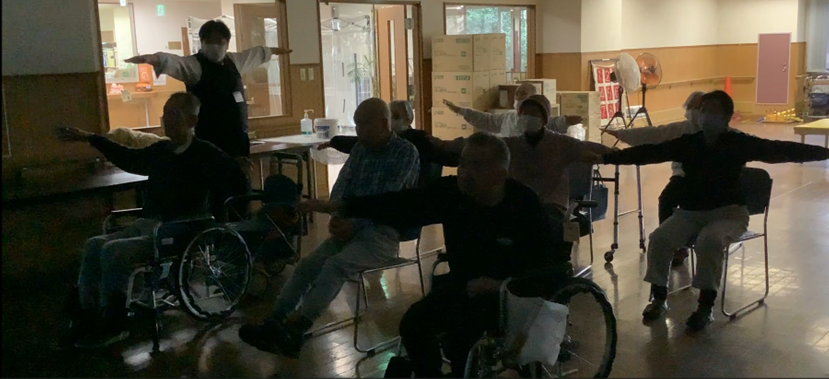 まずはラジオ体操で体をほぐして、その後は、関節や筋肉をゆっくり伸ばす体操、歌に合わせて声を出しながら行う体操など、バリエーション豊かに取り組みました。途中には雑談を交えた休憩もはさみ、参加者と体調や疲れ度合いを聞きながら、和やかな雰囲気の中で約30分間、楽しく体を動かしました。