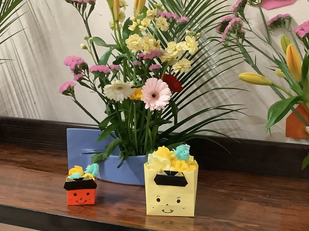 Hari ini, kami melakukan persiapan untuk menyambut Setsubun dengan membuat persiapan lempar kacang.