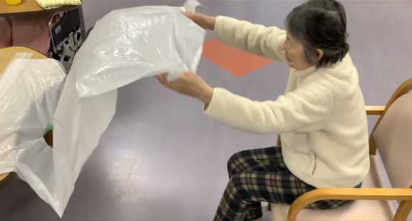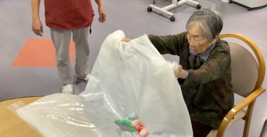 Pada kegiatan rekreasi hari ini, kami melakukan permainan “Menjatuhkan Otedama”.